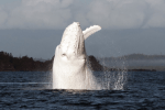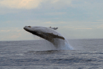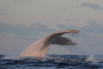 migaloo, one of only two known all white humpback whales, was photographed off the northern coast of new south wales as he made his annual migration north from antarctica. migaloo lost claim to being the only all white humpback in 2011, when an all white calf was spotted in these waters. most believe migaloo, now 35, to be the father. though often described as albino, migaloo has brown eyes and is more likely leucistic or hypopigmented.