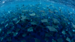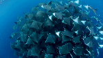 mobula rays are quite elusive and difficult to study, so biologists are not quite sure why they jump out of the water. theories vary from a means of communication, to a mating ritual (though both males and females jump), or as a way to shed themselves of parasites. they could also be jumping as a way of better corralling their pray, as seen with them swimming in a circular formation.