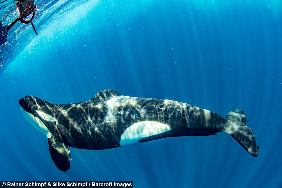 Rainer said: “We realised that one of the killer whales was our old friend Sira, who is a handicapped whale, which we had encountered first in 2013.”