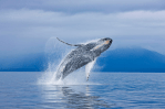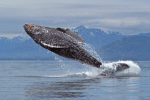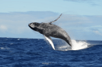 for a typical forty ton humpback to breach the ocean’s surface – and breach is taken to mean at least fourty percent of its body is out of the water – it needs to reach speeds of at least thirty km an hour. reasons for the behaviour remain debated, with theories varying from mere pleasure, to courtship or shedding the skin of parasites. it’s not uncommon for an adult to make multiple breaches, with the most recorded atone hundred and thrity jumps in ninety minutes.