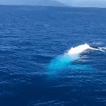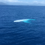 Migaloo is an albino humpback whale, usually sighted along the Australian coast, and occasionally in New Zealand waters. Migaloo was named by the Hervey Bay local aboriginal collective, and it means “white fella”. While several Humpback Whales have been spotted with almost 90% white pigment coverage, Migaloo is the only documented albino.