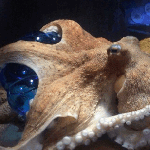 We recently got a set of hamster tubes to use for octo enrichment, and the set had a little blue lookout tower in it. Surprising everyone, our octo turned this sweet blue green color to match it! I had seen our reef octopus before her with colors like this occasionally, but never a common octopus. We also don’t have a lot of blue in that habitat, so she had no reason to be blue until her enrichment was blue! (She tends to be more rock/sand colored)