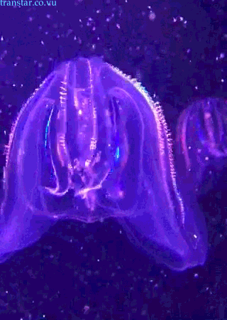 Comb jellies are beautiful, oval-shaped animals with eight rows of tiny comblike plates that they beat to move themselves through the water. As they swim, the comb rows diffract light to produce a shimmering, rainbow effect. Voracious predators on other jellies, some can expand their stomachs to hold prey nearly half their own size. (Taken from the Monterey Bay Aquarium website)