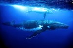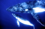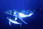 A breathtaking shot of Mozart the humpback whale calf with his mother, swimming freely off the shores of the Ha’apai Islands, Kingdom of Tonga.