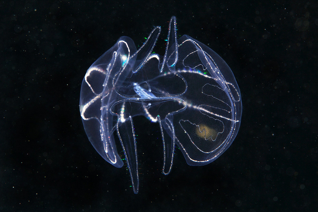 A bubble jelly from the Monterey bay aquarium. Their tentacles look like clouds. I love them.